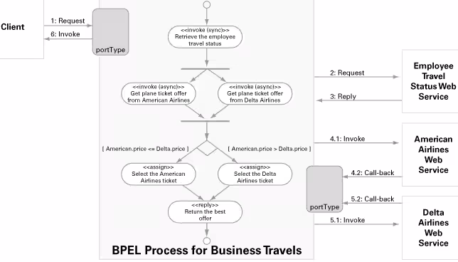 This messaging facility depends on the use of the Web Services Description Language WSDL 11 to describe outgoing and incoming messages. Business Process Execution Language Using BPEL a programmer formally describes business process that will take place across theWeb in such a way that any cooperating entity can perform one or more steps in the process the same way. In essence the equation Application Computation Coordination has become reality.