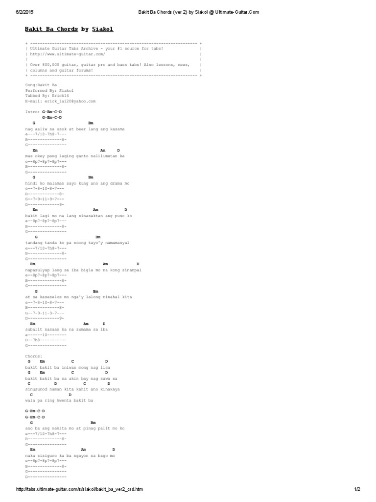 BAKIT BA Siakol Guitar Chords Tutorial with Lyrics January 12 2021 by 0 Comments. E-A-D-G-B-e Easy Guitar Tutorial Instrumental with Chords and Lyrics for Beginners Bakit Ba. Pro Access 80 OFF.